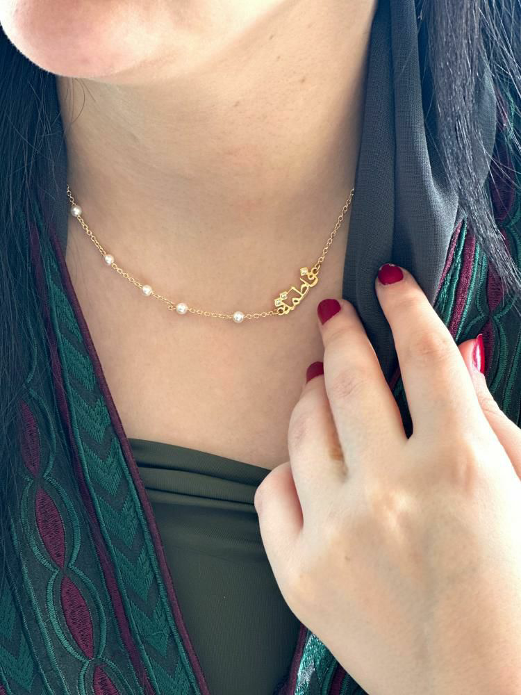 • سلسال ناعم بالاسم مع اللؤلؤ وفصوص على الاسم